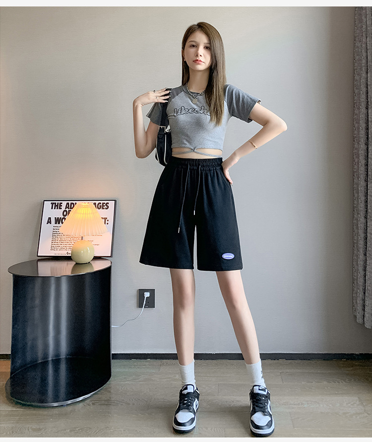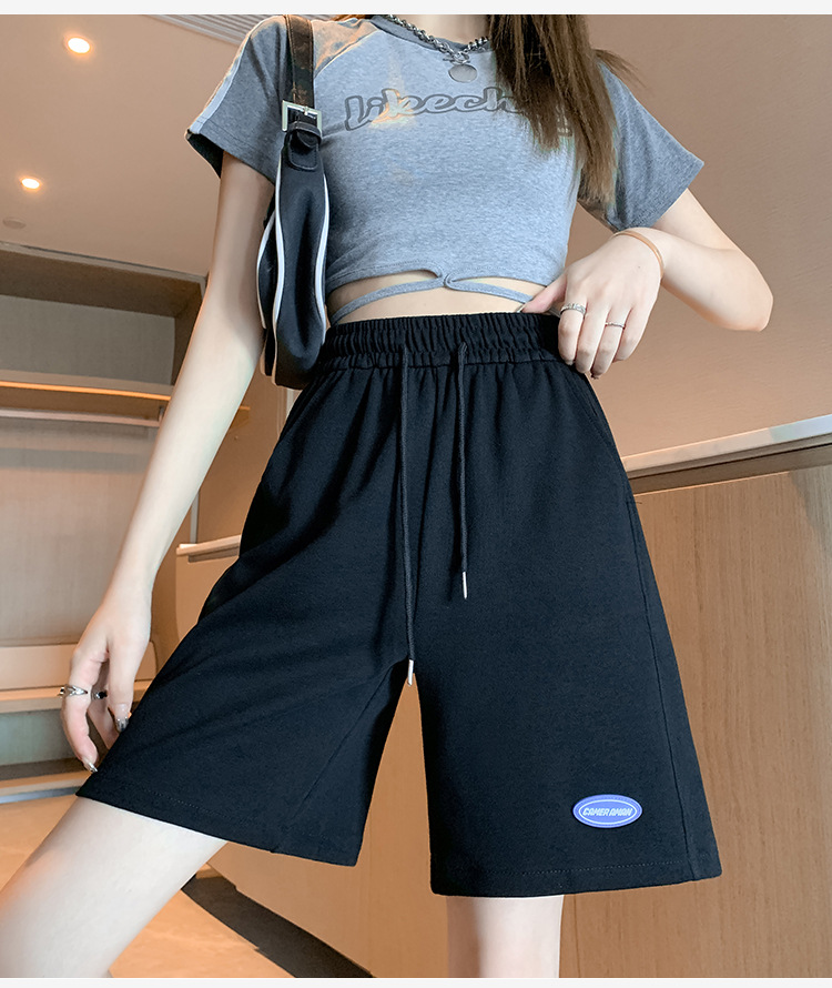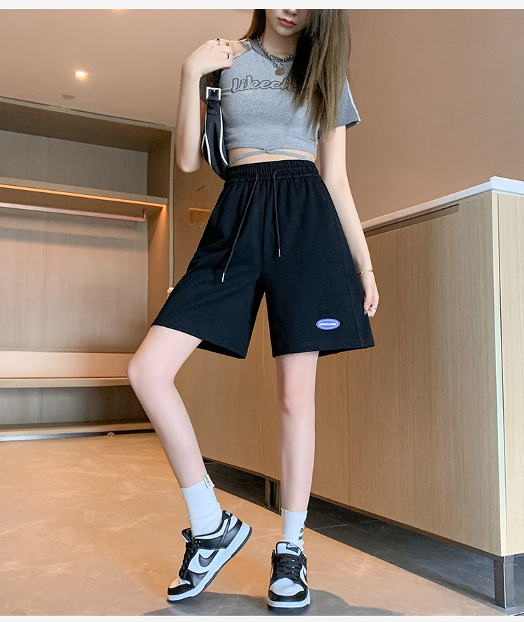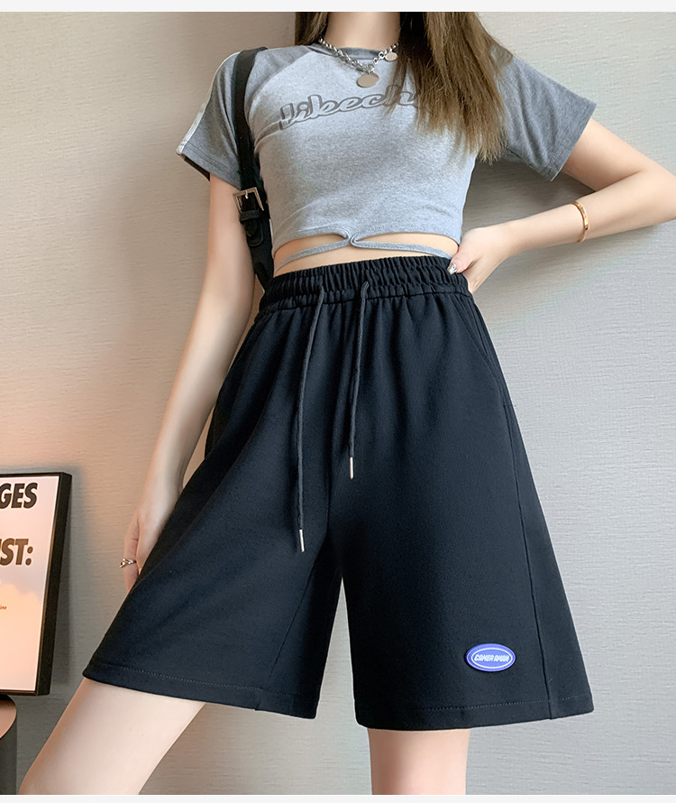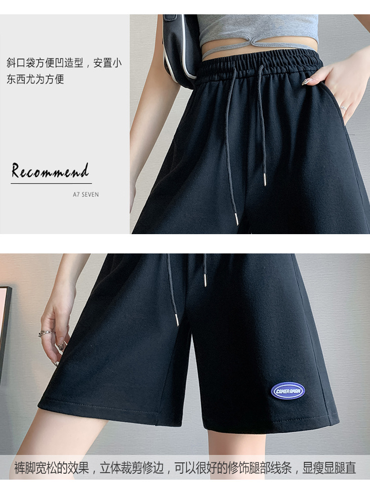 2023 New High Waist Sports Shorts Women's Summer Korean Version Of Loose Straight Leg Casual Pants Wide Leg Fifth Pants Can Be Substituted